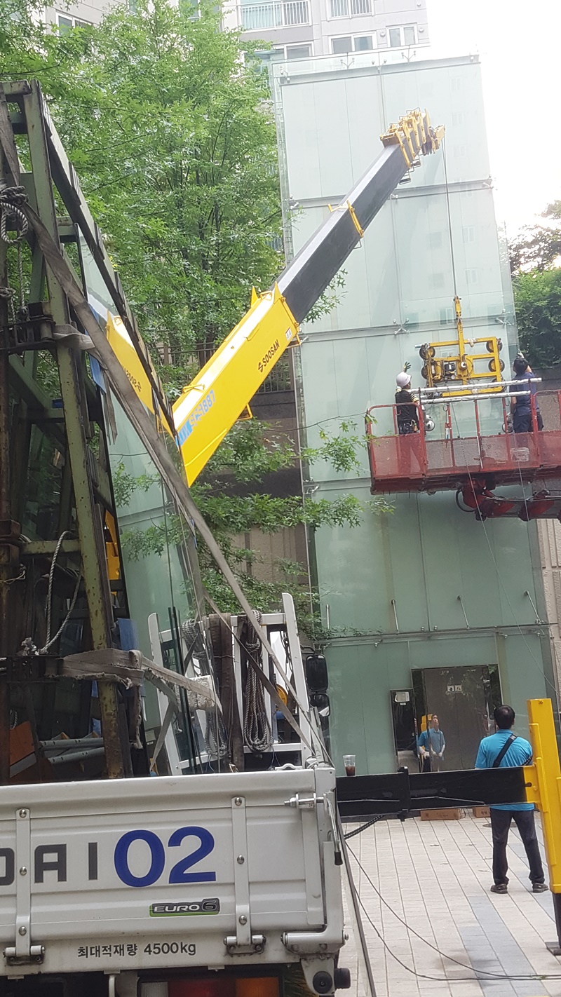 삼성래미안 누드 엘리베이터 유리시공 현장