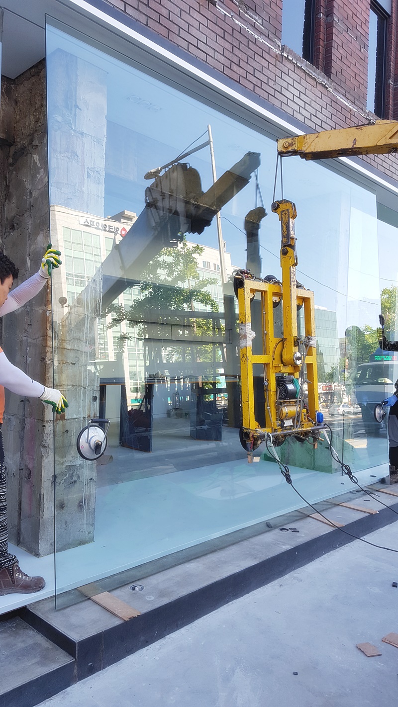 투명강화유리 의류전시장 시공현장