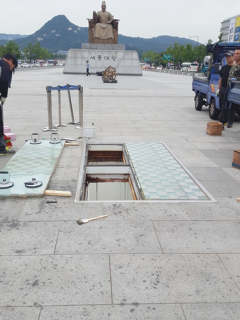광화문광장 바닥접합 강화유리 시공현장