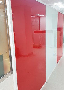 투명한 유리에 페인트를 프린트하여 탈색, 변색, 습기를 방지하기 위하여 열처리공정을 거친 유리로써 인테리어 마감소재로 많이 시공되며, 어떤 칼라라도 조색이 가능합니다.