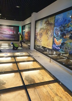 쥐라기공원 1층 전시장 바닥유리