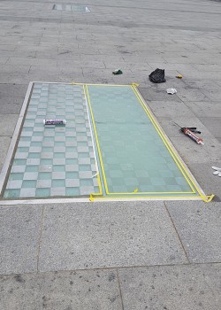 광화문광장 바닥접합 강화유리 시공현장
