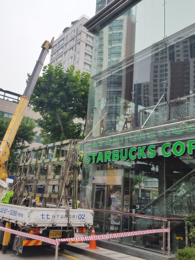 스타벅스 접합유리 시공